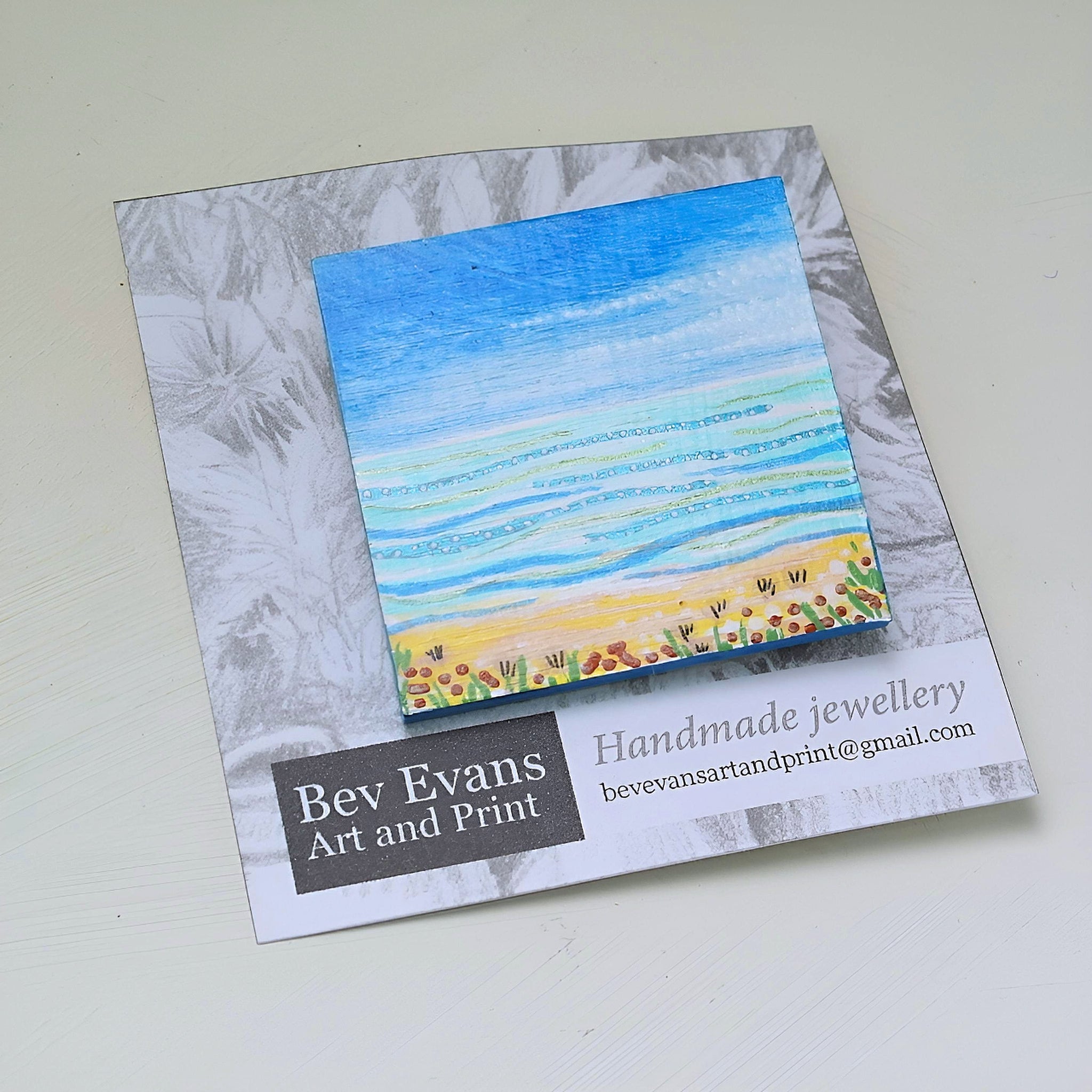 A hand painted one of a kind landscape style pin brooch from Liverpool based Artist Bev Evans.