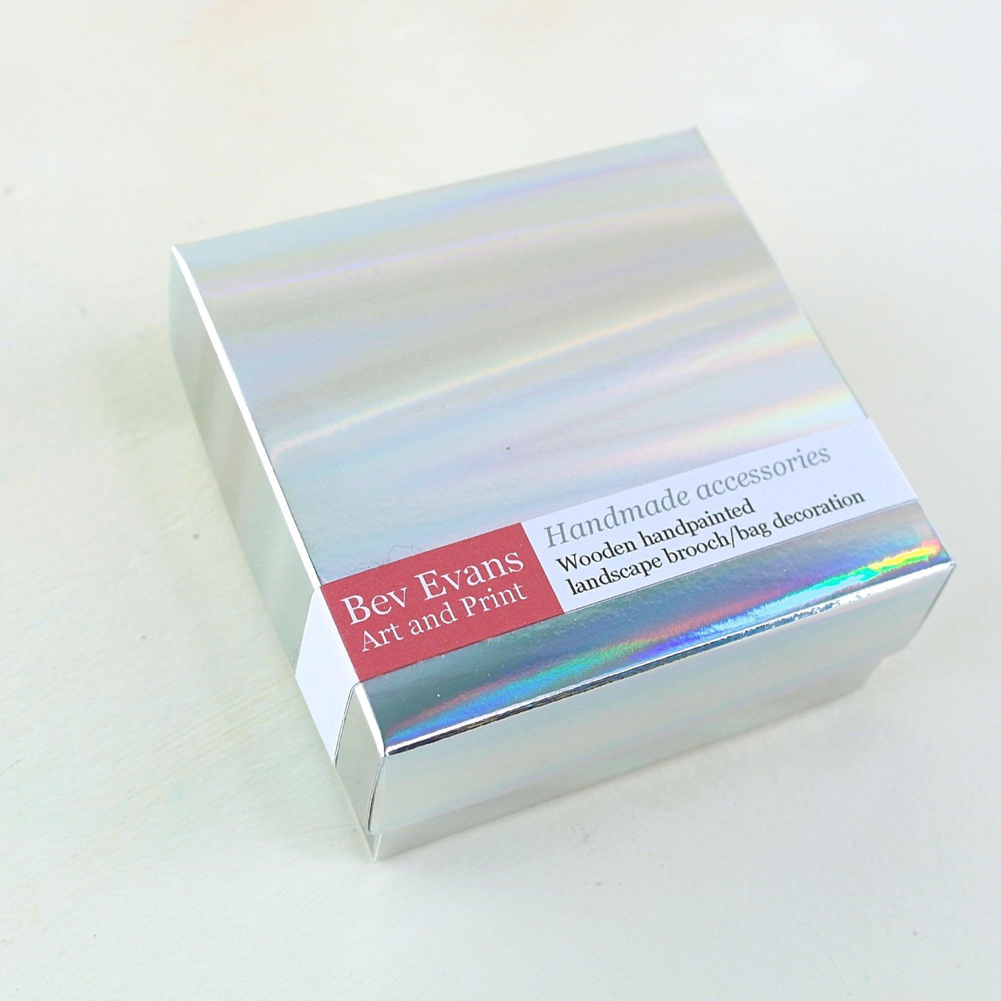 Complete with presentation box and artist information card, a perfect handmade gift! Measures around 4x4cm. Pained with Artist quality acrylic paints and finished with a hard wearing clear matt coating to keep your mini artwork protected as you wear it in all weather.