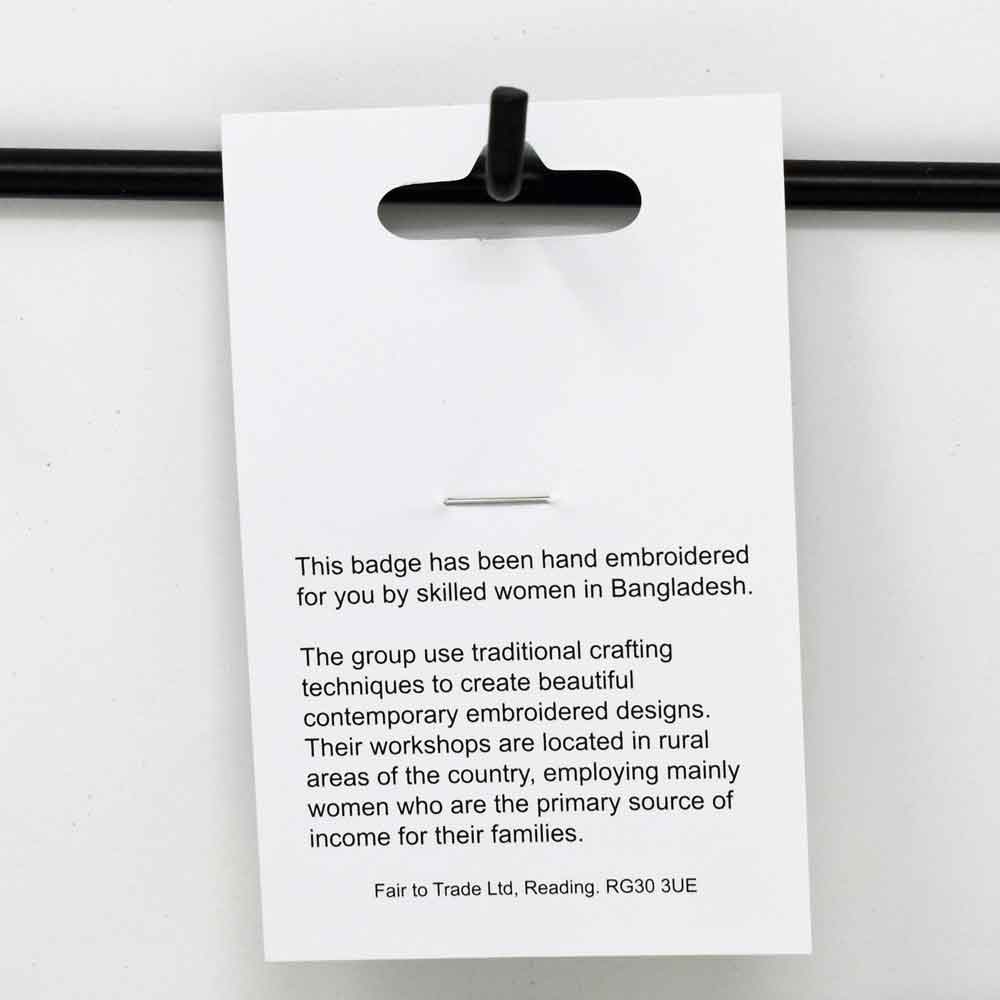 Made by women working with a Fair Trade group in Bangladesh, each brooch is carefully crafted using traditional embroidery techniques and supports dignified work for marginalised communities.