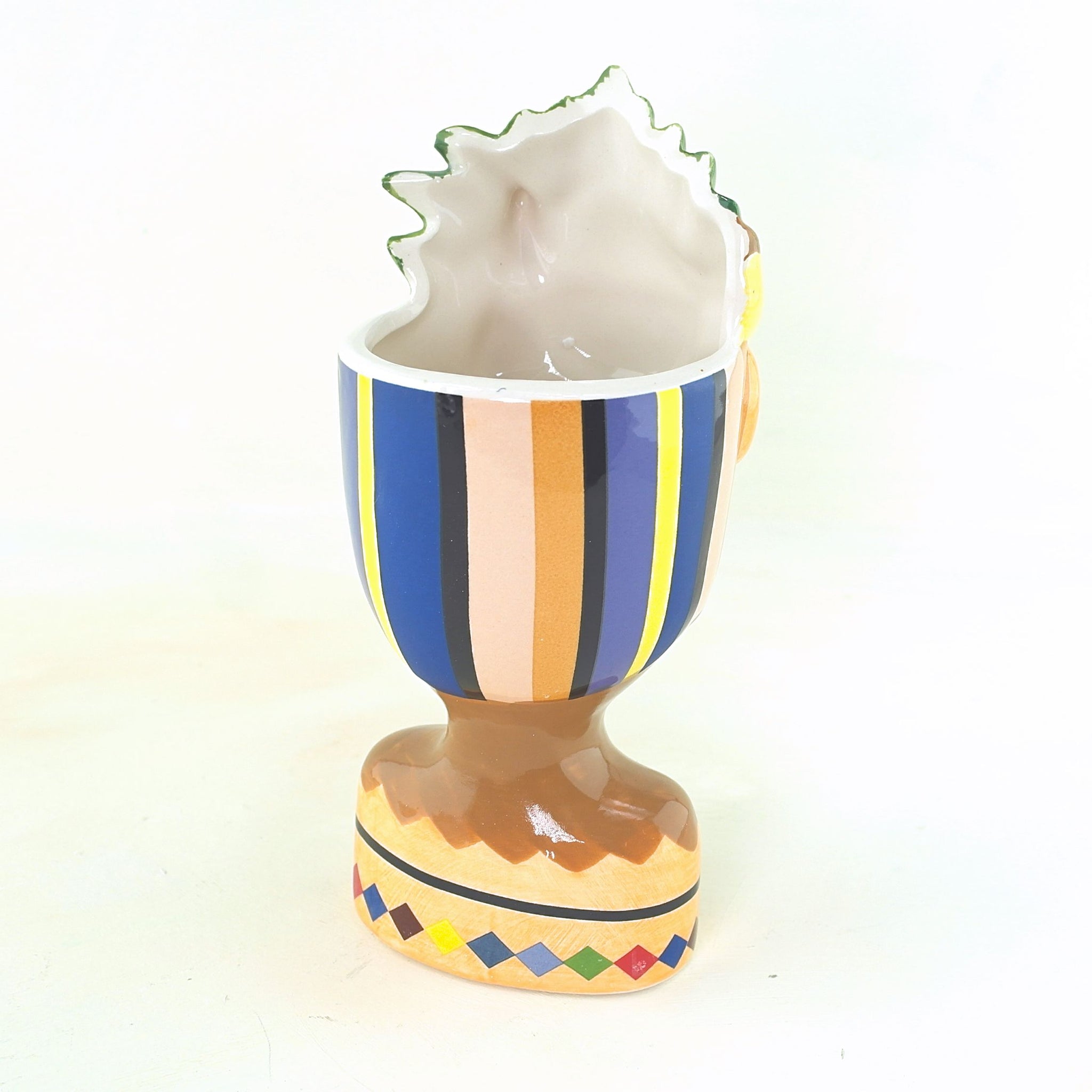 Ceramic pot or vase shaped like a lady with style! Pineapple and melons in her hat, sunglasses to shade her eyes! This oriental gal is ceramic and hand painted. Measuring 20cm tall, she brings life to any desk or home. Vase opening 8cm - fill with water for fresh flowers or dried - or use her as a desk tidy with paint brushes, pens and pencils.